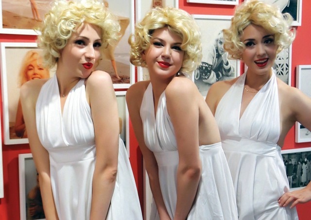 ثلاث عارضات أزياء يقمن بتقليد حركات ملكة الإغراء الممثلة السينمائية مارلين مونرو (1926 ــ 1962) في معرض للصور أقيم خصيصاً لإحياء ذكرى النجمة الأميركية الراحلة في مول شينايغ الشهير أمس، حيث يتردد عليه الجمهور بكثافة، وخاصة من النساء. ولاتزال مارلين مونرو أسطورة يحبها الكوريون ويتعلقون بذكراها كل عام.