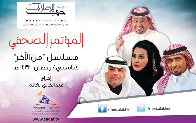 يعقد المدير التنفيذي لشؤون الإذاعة والتلفزيون ومدير قناة دبي، علي خليفة الرميثي، مؤتمراً صحافياً في التاسعة من مساء غد بفندق هيلتون في جدة، وبمشاركة كوكبة من نجوم الدراما السعودية والخليجية ورجالات الإعلام والإبداع والقنوات الفضائية لتدشين المسلسل السعودي «من الآخر». ويعرض «من الآخر» الذي ينتمي إلى نوعية المسلسلات التي تعكس واقع وطموحات المواطن السعودي بطريقة كوميدية فريدة، طوال شهر رمضان، ويشارك في بطولته كوكبة من ألمع نجوم الدراما السعودية.