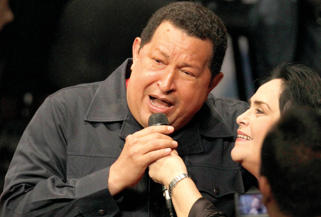 الرئيس الفنزويلي هوغو شافيز يحمل الميكروفون ويشارك المغنية الشعبية ليليا فيرا الغناء في اختتام أعمال المنتدى الثامن عشر لساوباولو للحركات التقدمية والأحزاب اليسارية، الذي أقيم في العاصمة كراكاس، ويبدو الرئيس الفنزويلي استعاد حيويته ونشاطه بعد خضوعه للعلاج المكثف في الأشهر الأخيرة نتيجة إصابته بأزمة صحية حادة.