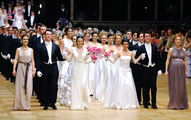 راقصات وراقصون يدخلون المنصة الرئيسية في مسرح أوبرا بال في فينا حيث يستمتع أكثر من 5 آلاف زائر من أهم الفعاليات الاجتماعية في النمسا ، حيث يقدمون لوحة فنية يتداخل فيها الإبداع الفني مع البصري بمشهدية محلقة تفيض بالألوان والأشكال البالغة الفتنة والدهشة، و تجذب هذه الفعاليات إليها الجمهور والمتابعين لهذا الفن المميز والمبهر وتبلغ سعر تذكرة الدخول للحدث 250 يورو أي نحو 335 دولار للشخص الواحد.