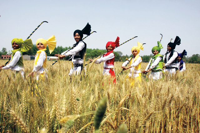 تلاميذ مدارس في أحد الحقول قرب مدينة آميريتسار في إقليم البنجاب، يرتدون ملابس تقليدية، ويقدمون عرضاً فلكلورياً راقصاً، إستعداداً لفعاليات مهرجان "فيسكاني"، الذي تبدأ اليوم .