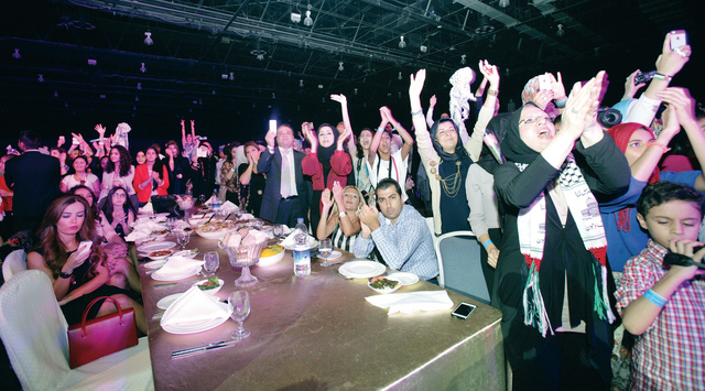 مهرجان ورود، وأعلام وكوفيات، وهتافات لم تتوقف على مدى أربع ساعات متواصلة، وتفاعل جماهيري متميز، ودقائق حداد، وأناشيد وطنية، وانفعالات متباينة، وحالات مختلفة عاشها الجمهور في دبي مساء أول من أمس في حفل نجوم "أراب آيدول" برفقة الفنان راغب علامة، الذي قدمته مؤسسة دبي للمهرجانات والتجزئة كجزء من فعاليات حملة "الصيف.. حتماً دبي"، واستضافه مركز دبي التجاري العالمي، وتولت مهمة تنظيمه "سبوت لايت إيفينتس".