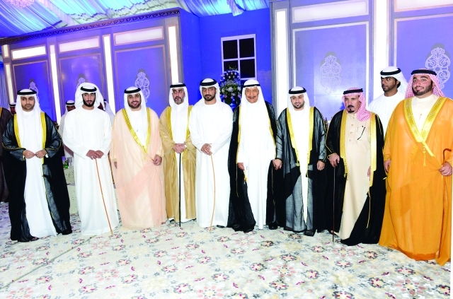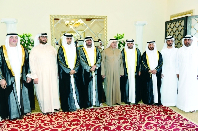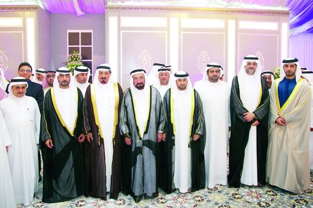 حضر صاحب السمو الشيخ الدكتور سلطان بن محمد القاسمي عضو المجلس الأعلى حاكم الشارقة، وصاحب السمو الشيخ حميد بن راشد النعيمي عضو المجلس الأعلى حاكم عجمان، حفل الاستقبال الذي أقيم بمناسبة زفاف الشيخ محمد بن حميد القاسمي، مدير دائرة الإحصاء والتنمية المجتمعية إلى كريمة الشيخ عبدالله بن محمد القاسمي.
