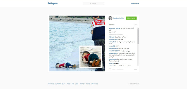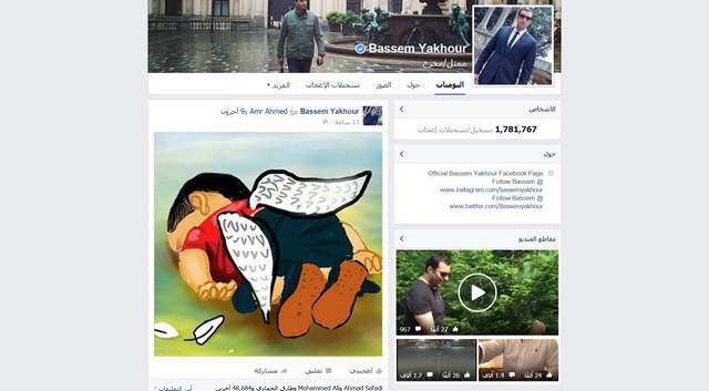 أما باسم ياخور فقد نشر صورتين، إحداهما للطفل بجناحين كالملائكة، بينما الأخرى تصور البحر مقبرة، معلقاً: "يا لعارنا جميعاً".