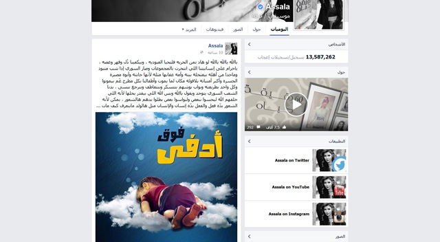 فيما طالبت أصالة السوريين بالوحدة، فكتبت: "بدنا الشعب السوري يتوحد ويقول ياالله وبس الله اللي بيقدر يحلها لأنه اللي خلقهم الله ليحسوا ببعض وليواسوا بعض بطلوا بدهم هالشعور ، يمكن لأنه الشعور بدّه فعل والفعل بدّه إنسان والإنسان متل هالولد ما بنعرف كيف مات".
