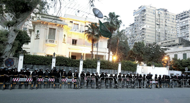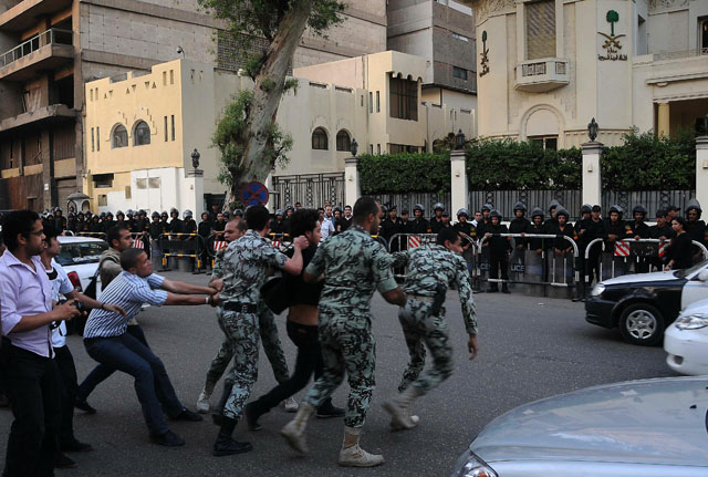 في الأثناء، رفض وزير الخارجية المصري محمد كامل عمرو، أمس، أي إساءة للعلاقات المصرية السعودية، منتقداً كتابة عبارات مسيئة للسعودية على أسوار سفارتها بالقاهرة، خلال تظاهرات احتجاجية خلال الأيام الماضية.