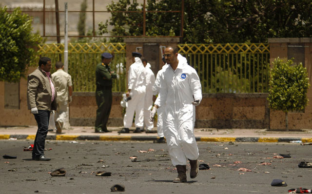 اعلنت مصادر طبية عسكرية في اليمتن ارتفاع حصيلة ضحايا التفجير الانتحاري الذي استهدف قوت الامن والجيش اليمني خلال البروفات الخاصة باحتفالات العيد الوطني إلى 96 قتيلا و300 جريح