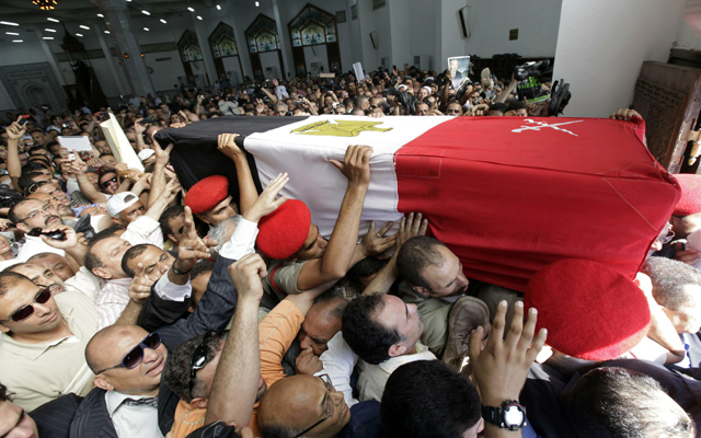وتم لف النعش الذي يحمل جثمان سليمان بعلم مصر وتم حمله عبر الشوارع في جنازة عسكرية.