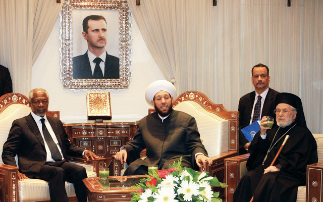 من جانبه، أكد الشيخ كميل نصر أن أنان «كان لديه تخوف من تحول النزاع في سوريا الى نزاع طائفي، ونحن أكدنا له بأنه لا خوف من حدوث حرب طائفية في سوريا ولا يوجد نزاع طائفي»، مضيفاً القول «نحن نخاف على بعضنا ولا نخاف من بعضنا». وقدّم مفتي سوريا الشيخ أحمد حسون، خلال اللقاء، شرحاً حول العيش المشترك الذي تشهده سوريا على مدى تاريخها.
