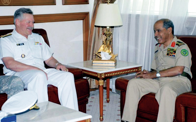 استقبل رئيس هيئة الأركان العامة السعودية الفريق الأول الركن حسين القبيل بمكتبه أمس قائد القيادة المركزية للقوات البحرية الأميركية الفريق البحري مارك فوكس والوفد المرافق له. وذكرت وكالة الأنباء السعودية انه جرى خلال الاستقبال «تبادل الأحاديث الودية ومناقشة عدد من الموضوعات ذات الاهتمام المشترك». وحضر الاستقبال نائب رئيس هيئة الأركان العامة السعودية الفريق عبدالعزيز الحسين. )