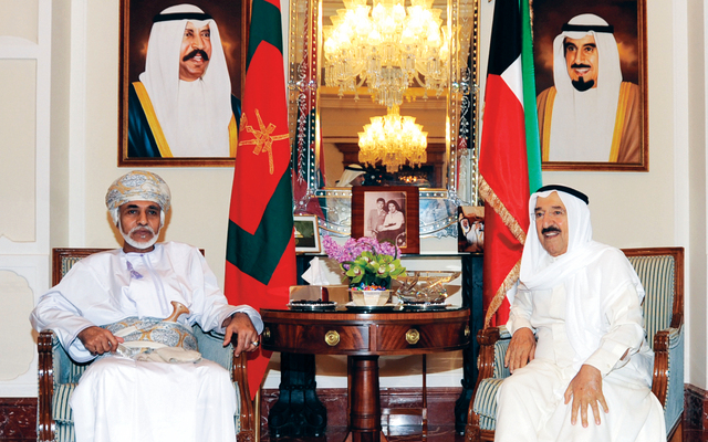 استقبل أمير الكويت الشيخ صباح الأحمد الجابر الصباح في قصره دار سلوى سلطان عُمان السلطان قابوس بن سعيد، وتم خلال اللقاء تبادل الأحاديث الودية التي عكست قوة ومتانة العلاقات الأخوية التاريخية التي تربط بين البلدين والشعبين الكويتي والعماني الشقيقين بما يجسد مسيرة التعاون الخليجي المشترك والحرص على توثيق أواصر العلاقات التاريخية المتميزة بين دولة الكويت وسلطنة عمان الشقيقة في المجالات كافة بما يخدم مصالحهما المشتركة، بحسب بيان رسمي كويتي. وأوضح البيان الكويتي أن لقاء صباح الأحمد مع ضيفه بحث في القضايا ذات الاهتمام المشترك وآخر المستجدات على الساحتين الإقليمية والدولية.
