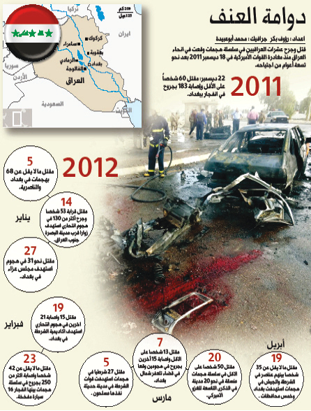 إلى ذلك، أدانت كتلة «العراقية» بزعامة أياد علاوي «استمرار تنفيذ التفجيرات الدامية بالرغم من الادعاء باتخاذ إجراءات أمنية مشددة إنما يعكس ضعف خطط الأمن، والحاجة الملحة إلى إعادة النظر فيها، ووضع الاستراتيجيات اللازمة لحفظ الأرواح وحقن الدماء»، مضيفة أن «الانهيارات الأمنية المتواصلة هي نتيجة حتمية لإخفاق المسؤولين في الإشراف على الملف».