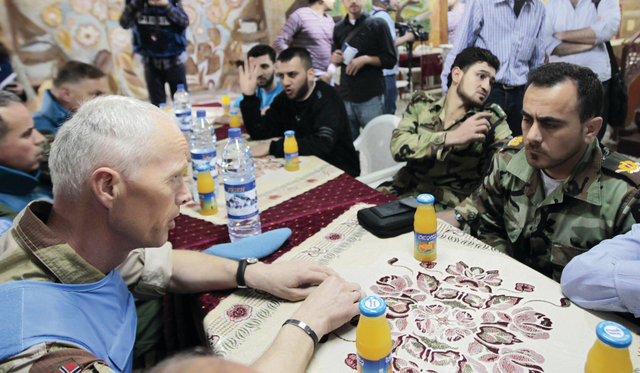 وزار رئيس بعثة المراقبين الدوليين في سوريا الجنرال النرويجي روبرت مود مدينة حمص، والتقى محافظها وتجوّل حيي بابا عمرو والخالدية. وقال مصدر محلي في مدينة حمص ليونايتد برس انترناشونال إن رئيس البعثة زار مدينة حمص والتقى محافظها اللواء غسان عبد العال، ثم قام بجولة في حي بابا عمرو ولم يلتق أحداً من السكان بل اكتفى بالمرور بالسيارات فقط، ثم توجه الى حي الخالدية».