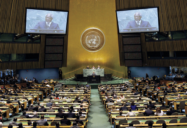 عقدت الجمعية العامة للأمم المتحدة، أمس، جلسة خاصة حول الأوضاع في سوريا، حيث دان المبعوث الأممي العربي المشترك كوفي أنان مذبحة القبير في ريف حماة، وطالب بـ«مستوى جديد» من التدخل الدولي لإنهاء العنف، مشيراً إلى أن خطة النقاط الست لم تنفذ، فيما اعتبر الأمين العام للأمم المتحدة بان كي مون أن الأسد فقد كل شرعية، مديناً «المجزرة المروّعة»، بينما أكد الأمين العام لجامعة الدول العربية نبيل العربي، أن مصداقية الأمم المتحدة «على المحك» حيال المجازر التي يتعرض لها الشعب السوري، مجدداً مطالبته بممارسة ضغوط على دمشق ضمن الفصل السابع من دون الخيار العسكري.