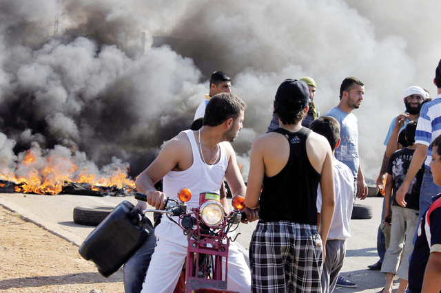 قطعت مجموعة مسلحة في منطقة وادي خالد على الحدود اللبنانية السورية،الطريق بالإطارات المشتعلة، احتجاجاً على خطف أحد أبناء البلدة في الساعة الواحدة من فجر أمس، في منطقة المسعودية في عكار شمال لبنان. وخطف سبعة مواطنين سوريين ولبنانيان اثنان، أمس، في شمال لبنان، في عمليات خطف متبادلة جرت بين أهالي منطقة وادي خالد المناهضة للنظام السوري وأهالي بلدة المسعودية المؤيدة له.
