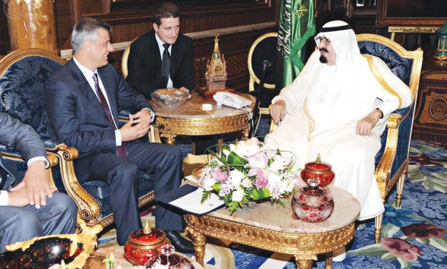 التقى خادم الحرمين الشريفين الملك عبد الله بن عبد العزيز آل سعود، ورئيس مجلس وزراء كوسوفو هاشم تاتشي، أمس، في جدة. وبحث اللقاء، وفقاً لوكالة الأنباء السعودية آفاق، التعاون بين البلدين وسبل تعزيزها في جميع المجالات، وذلك بحضور وزير الخارجية السعودي الأمير سعود الفيصل وعدد من المسؤولين من الجانبين. وكان رئيس مجلس الوزراء بجمهورية كوسوفو هاشم تاتشي قد وصل إلى مدينة جدة أمس في زيارة رسمية للسعودية.