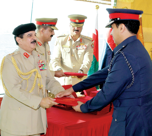 وأضاف الملك حمد بن عيسى في كلمة لدى رعايته حفل تخرج دورة القيادة والأركان المشتركة الرابعة أول من أمس أن «أمتنا في هذا الوقت بالذات تحتاج إلى أن تقوم قواتنا المسلحة بدور صمام الأمان والاستقرار لأوطاننا، حمايةً لسيادة القانون وحفاظاً على مسيرتنا نحو المزيد من التقدم والرقي»، معربا عن تقديره «لكل المساهمات التي قامت وتقوم بها قوة دفاع البحرين لأداء كل هذه الواجبات السامية، متكاتفة مع الأشقاء والأصدقاء».