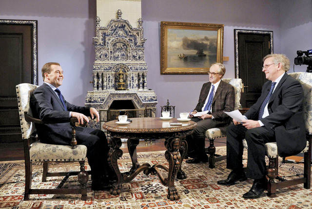 ورأى مدفيديف في مقابلة أجرتها معه وكالة فرانس برس وصحيفة «لو فيغارو» الذي وصل الى باريس مساء امس في زيارة عمل تستمر يومين لكن يتوقع أيضا أن تشكل فرصة لمحاولة تغيير الموقف الروسي بشأن الملف السوري، ان قرار باريس الاعتراف بالائتلاف «ممثلا شرعيا وحيدا للشعب السوري» والدعوة الى رفع الحظر على تسليم اسلحة الى المعارضين لنظام الرئيس السوري بشار الاسد قرار «موضع انتقاد».