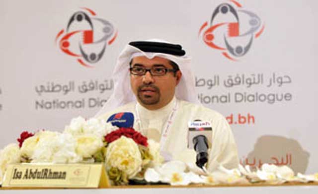 يؤكد الناطق الرسمي باسم حوار التوافق الوطني البحريني عيسى عبدالرحمن أن أرضية الحوار الوطني ستكون المواطنة وسقفه التوافق، معرباً عن الأمل في أن يتم تجاوز التحديات وبناء جسور الثقة بين كافة القوى السياسية «للتوافق على ما فيه مصلحة الوطن والمواطنين». وقال إن الحوار يمثل استمرارية للحوارات السابقة وركّز على أن «كل مخرجات الحوار المتوافق عليها ستنفذ من خلال القنوات الدستورية».