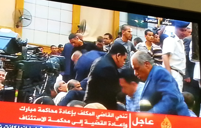 وذكرت مصادر تلفزيونية أن اشتباكات حدثت بين مؤيدي ومعارضي مبارك الذين كانوا خارج قاعة المحكمة .