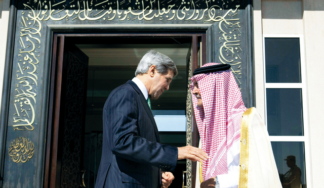 وقال الفيصل في مؤتمر صحافي مشترك مع نظيره الأميركي جون كيري «لن نقف مكتوفي الأيدي في مساعدة الشعب السوري للدفاع عن نفسه»، مضيفاً أنه «لا يمكن اعتبار سوريا الآن إلا أرضا محتلة، ما يتطلب ردا حازما دوليا سريعا. لم يعد هناك أي مبرر أو منطق يسمح لروسيا باستمرار تسليح النظام».