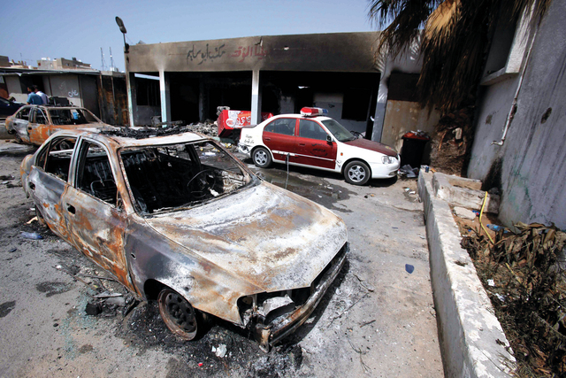 وقال عضو المجلس المحلي للمدينة ايوب الزروق ان «ثلاث سيارات انفجرت في ثلاثة أماكن مختلفة بفارق نصف ساعة». وكانت الحكومة الليبية نشرت الليلة قبل الماضية بياناً، أعربت فيه عن الأسف «لأعمال مؤسفة»، وأكدت «إرادتها» في تطبيق قرار سحب «الميليشيات غير القانونية» من طرابلس.
