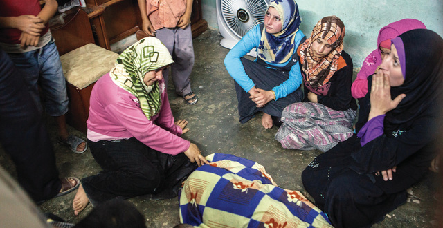 ووزعت الهيئة اشرطة فيديو عن آثار القصف على المغارة بدت فيه امرأة تجلس أرضاً وهي تنتحب، بينما يحاول رجل مساعدتها على الوقوف وهو يبكي أيضا بأعلى صوته، وذلك على مقربة من دمار وركام وحشد من الناس تجمع قرب المكان الذي يتصاعد منه الدخان.