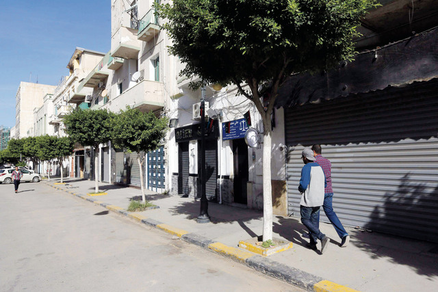 وخلت شوارع العاصمة الليبية ووسطها من المارة أمس، فيما شوهدت أعداد قليلة من السيارات تتحرك. وأقفلت المدارس والمصارف ومعظم المؤسسات الحكومية والمحال التجارية باستثناء تلك التي تقدم خدمات يومية للسكان مثل الصيدليات والمخابز.