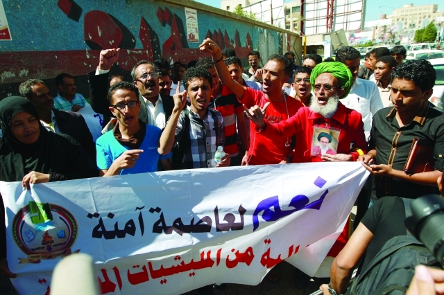 وشارك عشرات اليمنيين أمس في وقفة احتجاجية أمام مقر محافظة إب جنوب صنعاء، للمطالبة بخروج جميع الميليشيات المسلحة منها. وقال مصدر إعلامي لوكالة الأنباء الألمانية إن المواطنين طالبوا برفع جميع المظاهر المسلحة من المدينة ورفعوا شعارات تدين جماعة أنصار الله الحوثية التي استحدثت عدداً من نقاط التفتيش في المحافظة، إلى جانب عناصر القاعدة التي قامت بذلك هي الأخرى في مناطق عدة بمديرية العدين.