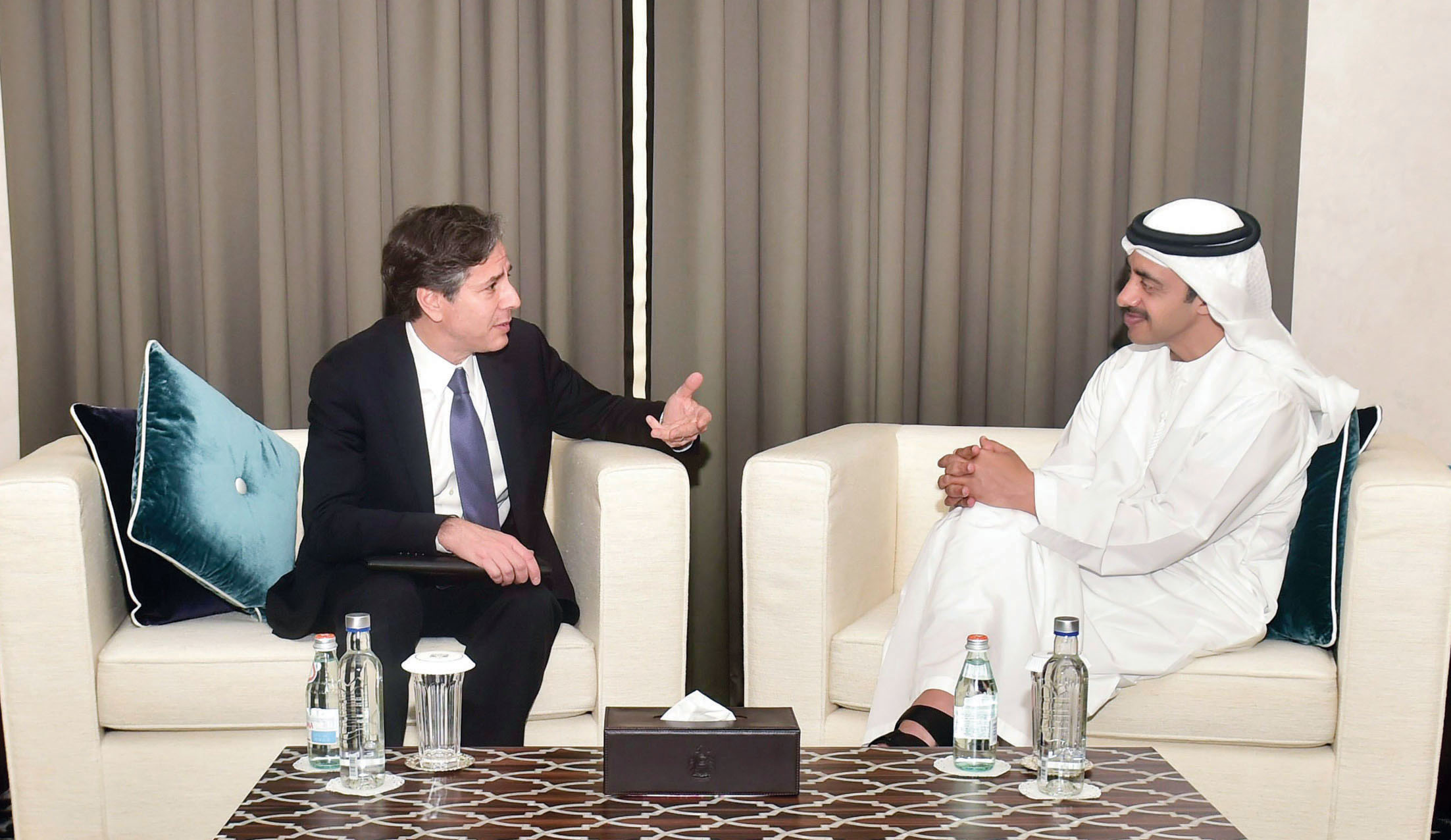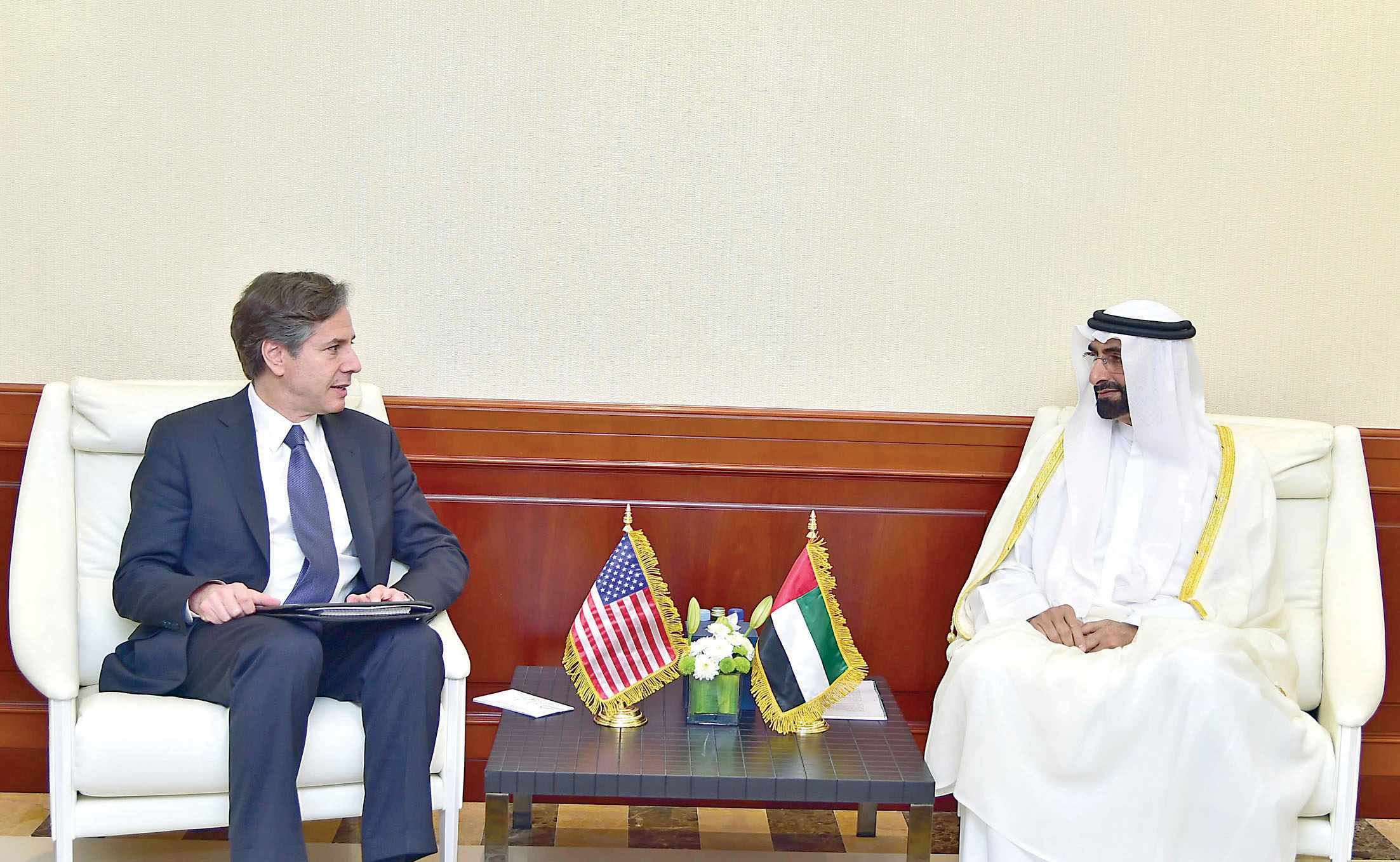 استقبل سمو الشيخ عبدالله بن زايد آل نهيان وزير الخارجية، في ديوان عام الوزارة، نائب وزير الخارجية الأميركي لشؤون الشرق الأوسط توني بلينكن الذي يزور البلاد حالياً. وتم خلال اللقاء بحث علاقات الصداقة والتعاون بين الإمارات العربية المتحدة والولايات المتحدة الأميركية والقضايا ذات الاهتمام المشترك.