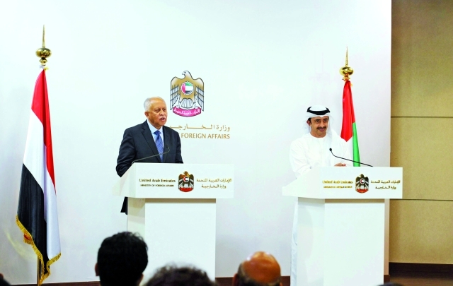 ورحب سموه في بداية مؤتمر صحافي عقده بالديوان العام الوزارة في أبوظبي أمس بوزير الخارجية اليمني رياض ياسين، مشيراً إلى أن «اللقاء اتسم بوضوح الرؤية المشتركة في ما يخص الأوضاع في اليمن». وأكد سموه ثقته بأن عملية «عاصفة الحزم» ستحقق أهدافها لإعادة الأمن والاستقرار في اليمن..