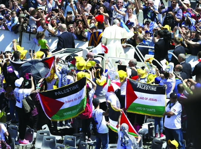وكان البابا فرنسيس التقى أول من أمس، الرئيس الفلسطيني محمود عباس، ووصفه بأنه «ملاك سلام»، وذلك بعد أيام من إعلان الفاتيكان عن صياغة معاهدة تعترف رسمياً بدولة فلسطين.