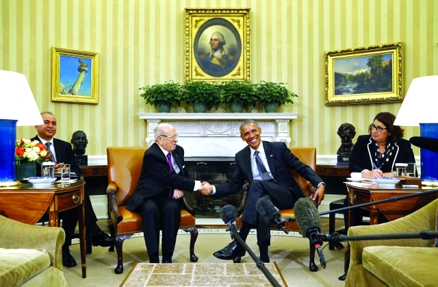اعلن الرئيس الأميركي باراك أوباما لدى استقباله نظيره التونسي الباجي قايد السبسي نيته منح تونس صفة الشريك الرئيسي من خارج الحلف الاطلسي «الناتو». فيما اعتبر السبسي في تصريحات أدلى بها قبيل اللقاء إنّه «لا وجود لربيع عربي» وتونس استثناء، فيما اتهم حزب «نداء تونس» الحاكم حزب الرئيس السابق منصف المرزوقي بتأجيج الأوضاع في الجنوب.