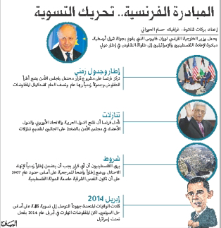 ومن المقرّر أن ينتقل فابيوس إلى عمان اليوم الأحد ثم رام الله والقدس وتل أبيب خلال زيارته الرابعة للمنطقة منذ العام 2012 لعرض الفكرة الأساسية للمشروع الفرنسي التي تقوم على استئناف المفاوضات الفلسطينية الإسرائيلية تحت رعاية دولية ووفق جدول زمني محدّد.