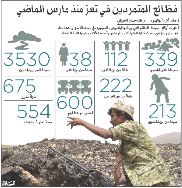 الى ذلك وفي عدن أفادت تقارير إعلامية بمقتل سبعة مدنيين وإصابة 81 آخرين، بينهم نساء وأطفال، إثر قصف عشوائي للمسلحين الحوثيين، على أحياء سكنية في المدينة المحاصرة من الجهات البرية الثلاث.