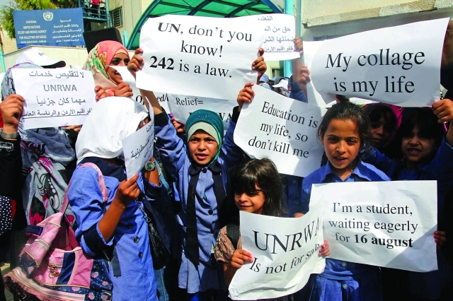 وأوضحت الوكالة في بيان صحفي أمس أنه ما لم يتم الحصول على تمويل بكامل قيمة العجز المالي الذي تعاني منه، فإن الأزمة المالية قد تجبرها على تعليق الخدمات المتعلقة ببرنامجها التعليمي إلى أن يتم تأمين المبلغ بأسره.