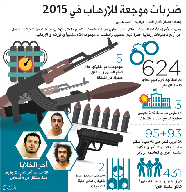وقال الناطق الأمني بوزارة الداخلية اللواء منصور التركي أنه إلحاقاً للبيان الصادر مؤخرا بشأن مداهمة قوات الأمن موقعين مختلفين بمنطقة الرياض أحدهما بحي المونسية وتم القبض فيه على كل من أحمد سعيد الزهراني ، ومحمد سعيد الزهراني ، أما الثاني فيقع بمحافظة ضرماء وتم فيه ضبط معمل لتصنيع المواد المتفجرة ، فإنه قد تم الكشف عن خلية إرهابية مكونة من خمسة أشخاص في أربعة مواقع ، ثلاثة منها بمدينة الرياض ، والرابع بمدينة الدمام بالمنطقة الشرقية.