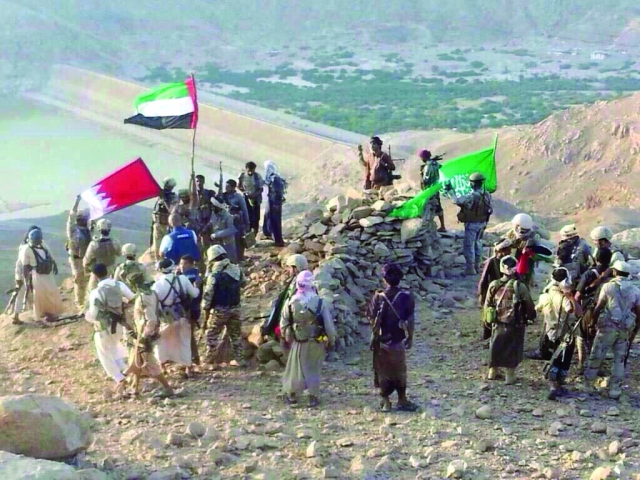 رفعت أمس أعلام دول التحالف العربي على سد مأرب إثر السيطرة الكاملة على السد من قبل قوات الشرعية والتحالف العربي، التي أحرزت تقدماً استراتيجياً على مختلف جبهات محافظة مأرب تمهيداً لفتح الطريف نحو صنعاء، في حين شنت مقاتلات التحالف عشرات الغارات على مواقع الحوثيين في صنعاء والحديدة، وتعز، التي دارت فيها معارك كر وفر في مديرية الوزعية، واستهدفت فيها غارات التحالف تعزيزات عسكرية للمتمردين كانت في طريقها إلى لحج المجاورة، بينما استشهد أحد منتسبي فرع إدارة المجاهدين في منطقة جازان جراء قذائف أطلقت من الأراضي اليمنية.