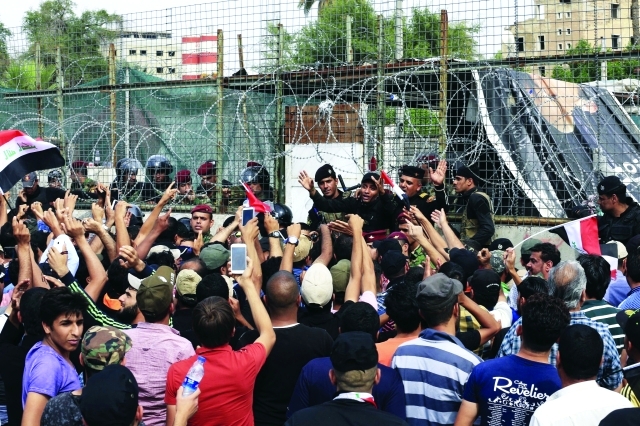 وعمد مقتدى الصدر للتهديد، خلال شهر فبراير الماضي، بأن شعاره الأولي «الإزالة» (كإشارة إلى إزالة السياسيين الفاسدين) تغير ليكون «إزالة واجتثاث» النظام السياسي. كما عمد في 27 مارس الماضي، لإلغاء عملية اقتحام متوقعة للمنطقة الخضراء، معلناً أنه سيدخل المنطقة بنفسه بصفته ممثلاً للشعب. وباقتحام المتظاهرين للمنطقة، أخيراً، استنفد مقتدى الصدر جميع أوراقه، وبالتالي فإن الأمور التي ستحدث بعد ذلك مفتوحة للتكهنات.