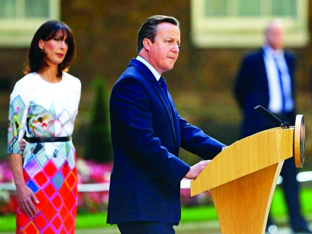 وسارع رئيس الوزراء البريطاني ديفيد كاميرون، المفجوع بالهزيمة، إلى الإقرار فوراً بعجزه عن قيادة البلاد عبر الزوبعة المقبلة، وأعرب في خطاب معبّر مقتضب من «داونينغ ستريت» عن تقبله للفشل، معلناً أن خلفه سيتولى زمام الأمور بحلول موعد مؤتمر الحزب في أكتوبر المقبل. غير أن الخطب لم تعد تشفع له، ولا التاريخ سينقذه، وسيعتبره رجلاً راهن على مستقبل بلاد برمتها للخروج من أزمة حزبية. ويضاف إلى خطيئة كاميرون الأصلية رفضه التصدي بحزم لأعداء الداخل حيال خططهم المفصلة للاستفتاء الشعبي العام، على الرغم مما يتمتع به من سلطة اكتسبها من ولاية جديدة فاز بها، أخيراً.