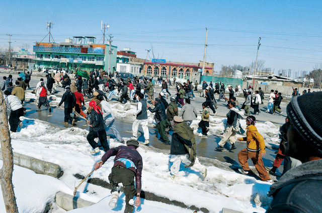 وقال شهود إن التظاهرات اجتذبت آلاف الأفغان رغم برودة الجو، حيث حطم بعض المحتجين واجهات المتاجر. كما القى نحو 400 محتج الحجارة وأضرموا النار في عدد من السيارات بقاعدة عسكرية تحت قيادة القوات النرويجية في شمال أفغانستان. كما تحول احتجاج صغير من نحو 500 شخص للعنف في العاصمة كابول.