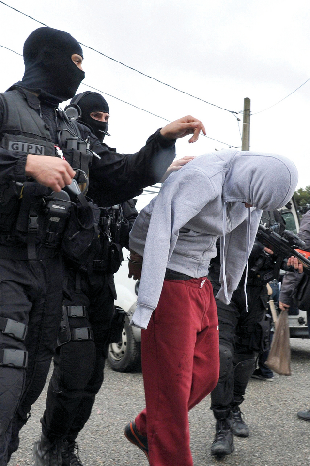 عناصر من الأمن الداخلي الفرنسي يعتقلون مشتبهاً في انتمائه إلى الإسلاميين المتشددين، خلال حملة تقوم بها السلطات الأمنية في مدن مارسيليا وفالينس في الجنوب وبلدة روبيه شمال البلاد. وكانت حملة المداهمات التي تقوم بها الشرطة الفرنسية أسفرت عن اعتقال عدد من المشتبه بهم. وتتخذ السلطات الفرنسية نهجاً صارماً ضد من تصفهم بالإسلاميين المتطرفين منذ سلسلة حوادث القتل من قبل من وصف بالمسلح إسلامي داخل وخارج مدينة تولوز جنوب غرب البلاد في مارس الماضي.