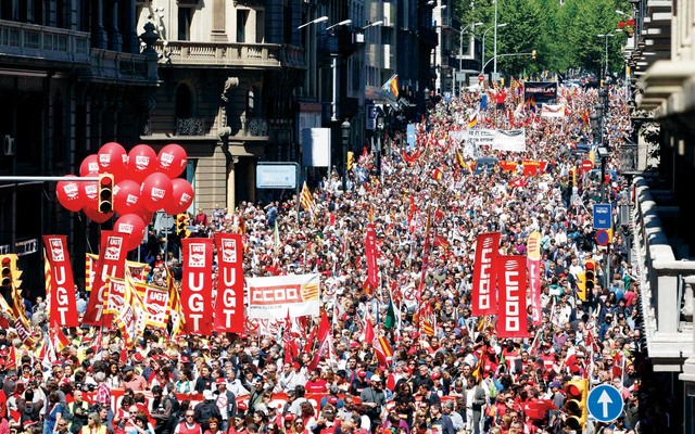 كما احتج آلاف العمال في أنحاء جنوب أوروبا على خفض الانفاق في تجمعات حاشدة. وتستغل نقابات عمالية في اليونان واسبانيا والبرتغال وإيطاليا وفرنسا المسيرات التقليدية للتعبير عن غضبها من حملة تقشف في أنحاء منطقة اليورو بهدف تحسين الأحوال المالية لكنها تلقى انتقادات لأنها تدفع الدول لمزيد من الركود.
