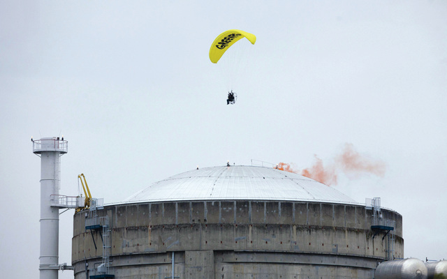 حاولت منظمة «السلام الأخضر» غير الحكومية التي تعنى بالبيئة إيصال بعض الرسائل إلى فرنسا وغيرها من البلدان التي لديها مفاعلات نووية منها أنه لا أمان مع الخيار النووي أياً تكن الإجراءات الأمنية المتخذة لحماية المنشآت النووية، حيث قام ناشط حقوقي بالتحليق فوق المنشأة باستعمال مظلة لإشعار السلطات بخطر تجاربهم النووية. )