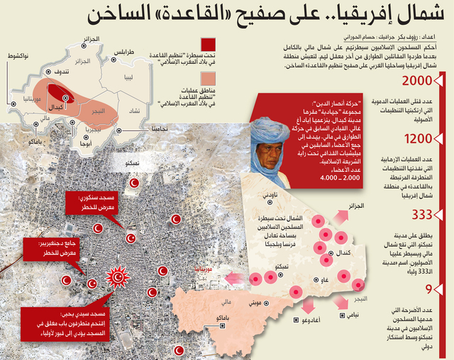 وفي منتصف يونيو الماضي، قرع الرئيس النيجري مهامادو اسوفو جرس الإنذار بقوة حينما وصف جارته مالي بـ«أفغانستان الجديدة»، داعياً إلى تدخل دولي، ومعتبراً ان ما يحصل يمثل تهديداً جدياً على جميع بلدان الغرب الإفريقي. وحذر أوروبا انها لن تكون بمأمن أو بمعزل عن خطر «القاعدة».