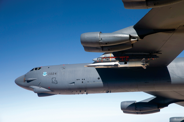 واظهر مقطع مصور نشرته القوات الجوية الطائرة وهي تسقط من أسفل الجناح الأيسر لقاذفة ثقيلة من طراز «بي-52» على ارتفاع نحو 50 ألف قدم ثم تشق مسارها بسرعة هائلة مخلفة وراءها أثرا طويلا من البخار.