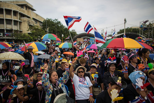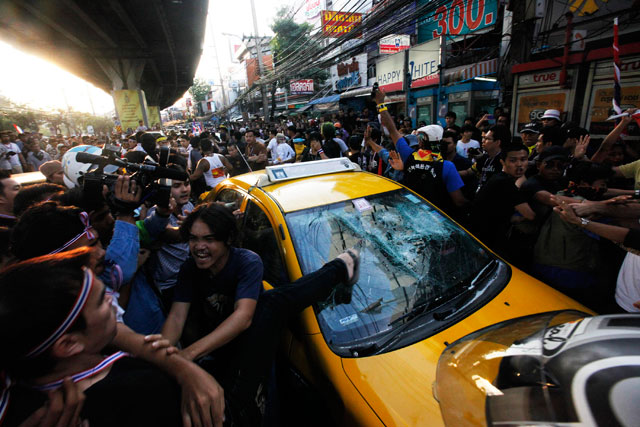 في ظل التوتّر الأمني الذي تشهده تايلاند مع تصعيد المعارضين حراكهم في الشارع لإسقاط الحكومة، وسع المتظاهرون رقعة المؤسسات الحكومية المستهدفة، باحتلالهم مجمعين يضمان شركتي الاتصالات الرئيستين في البلاد، فيما حاولوا أيضاً اقتحام مقر الحكومة في محاولة لشل عملها، إذ تأمل المعارضة بإسقاط رئيسة الوزراء، قبل عطلة نهاية الأسبوع، عبر تظاهرات حاشدة.