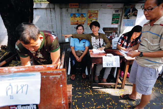 في حين خيم هدوء نسبي على مجمل عملية الاقتراع باستثناء بضع مشاجرات جرت بعد يوم على إصابة سبعة أشخاص بجروح من أعيرة نارية وتفجيرات خلال اشتباكات بين مؤيدين ومعارضين لرئيسة الوزراء ينجلوك شيناواترا في شمال بانكوك معقل حزبها بويا تاي.
