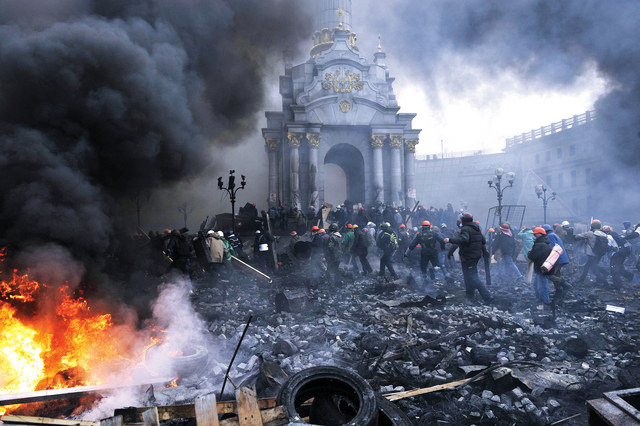 تصاعدت أعمال العنف في أوكرانيا أمس بين قوات الأمن والمتظاهرين, حاصدة أكثر من 50 قتيلاً على الرغم من وجود ثلاثة وزراء من الاتحاد الأوروبي في البلاد سعياً لوقف إراقة الدماء في البلاد، في وقت احتجز المتظاهرون 67 شرطياً، بينما حذرت دولة الإمارات العربية المتحدة مواطنيها من السفر إلى أوكرانيا، مع طرح أوروبا لخريطة طريق لحل الأزمة.