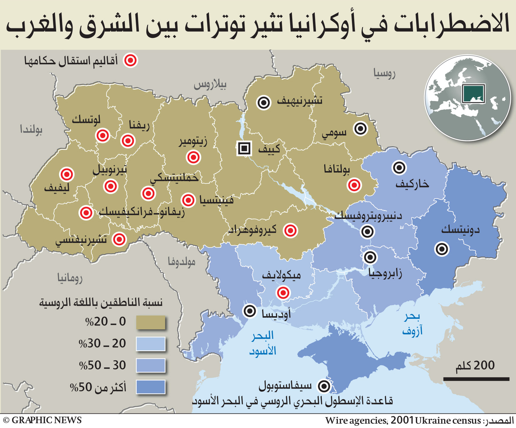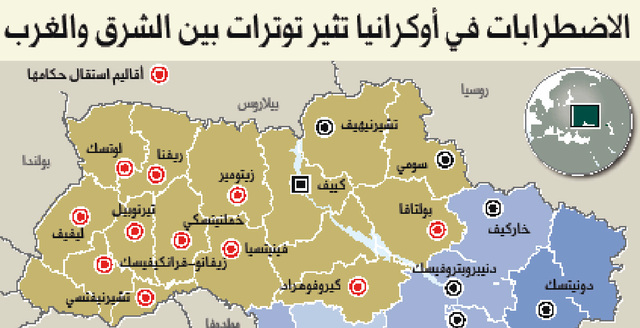 تفاعل المشهد في أوكرانيا بشكل دراماتيكي اختلط فيه تطوّر الداخل المتأجّج بردود أفعال الخارج المنقسم بين ساخط قلق ومؤيّد حذر، إذ أصدرت السلطات الجديدة مذكرة توقيف بحق الرئيس المعزول فيكتور يانوكوفيتش بتهمة القتل الجماعي، فيما تطاير شرر الغضب الروسي عبر هجوم مضاد على جبهات عدّة، بدأ تشكيكاً بشرعية السلطات الأوكرانية ولم ينسْ استدعاء السفير من كييف للتشاور وتهديداً بزيادة الرسوم الجمركية على إيرادات أوكرانيا حال تقاربت مع أوروبا، في الأثناء رسم الأوروبيون ملامح تقاربهم مع كييف حكومة منتخبة وإصلاحات اقتصادية.